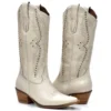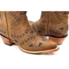 Cano de aproximadamente 32cm, em couro bovino, na cor Dakar Havana, com bordados em alta definição e aplicação de rebites.