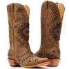 Cano de aproximadamente 32cm, em couro bovino, na cor Dakar Havana, com bordados em alta definição e aplicação de rebites.