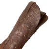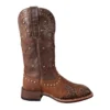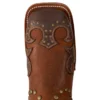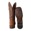 Seu design apresenta um bico quadrado moderno e um solado flare café que garante conforto e estabilidade ao caminhar. O corte em V para panturrilha proporciona um ajuste elegante, enquanto o detalhe em costura e as tachas adicionam um toque de personalidade ao visual.