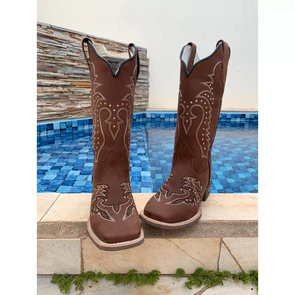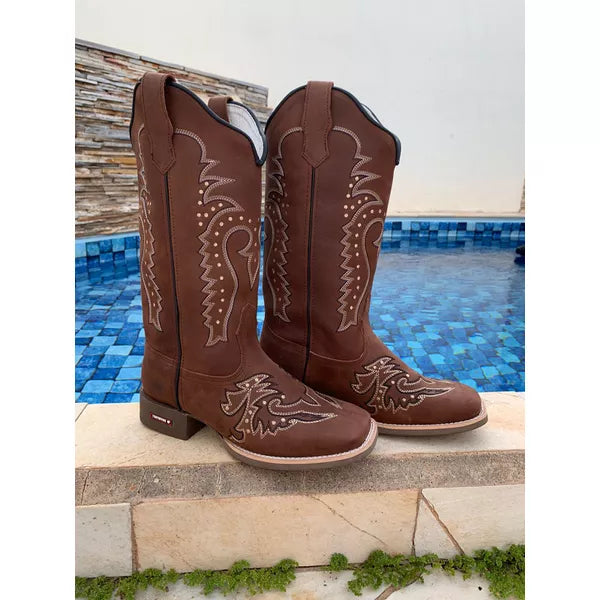 As Botas Texanas Bruto são confeccionadas com 100% couro bovino legítimo com detalhes bordados no cano. Acabamento de extrema qualidade e perfeição. São resistentes, além de modernas e confortáveis, tem garantia de durabilidade e qualidade. Modelo prático, versátil e elegante.