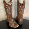 Bota Texana Laser Tribal Glitter Rosa Bebê com Strass Couro Marrom fabricada toda com couro 100% legítimo.