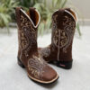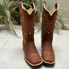 Bota Texana Tribal e Florão Laranja Couro Marrom fabricada toda com couro 100% legítimo.