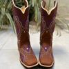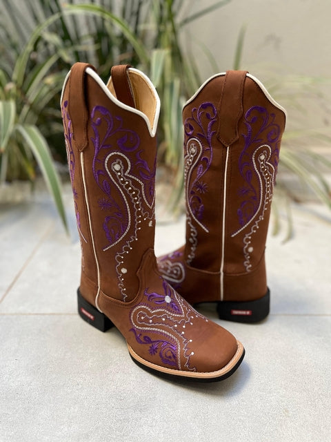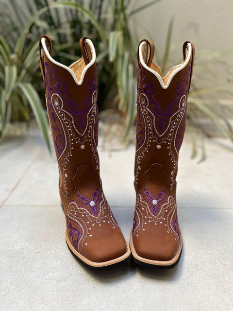 Bota Texana Tribal Roxo e Branco Couro Marrom fabricada toda com couro 100% legítimo.