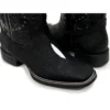 Cano de aproximadamente 34cm, também em couro bovino na cor Fossil Preto, com bordados. Possui puchador nas laterais do cano, facilitando o calçar. Cano forrado em couro com costuras de proteção personalizada e aplique de rebites.