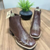Solado: Borracha ou Couro Amadeirado, costurado, pregado e colado (blaqueado)