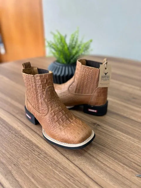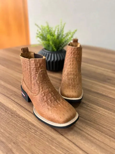 Botina Samuel – Couro Jacaré Caramelo/Sem Bordado