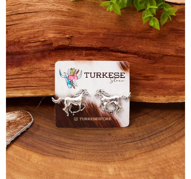 Brinco na medida de 2,5 cm x 1,5 cm, em formato de cavalo.