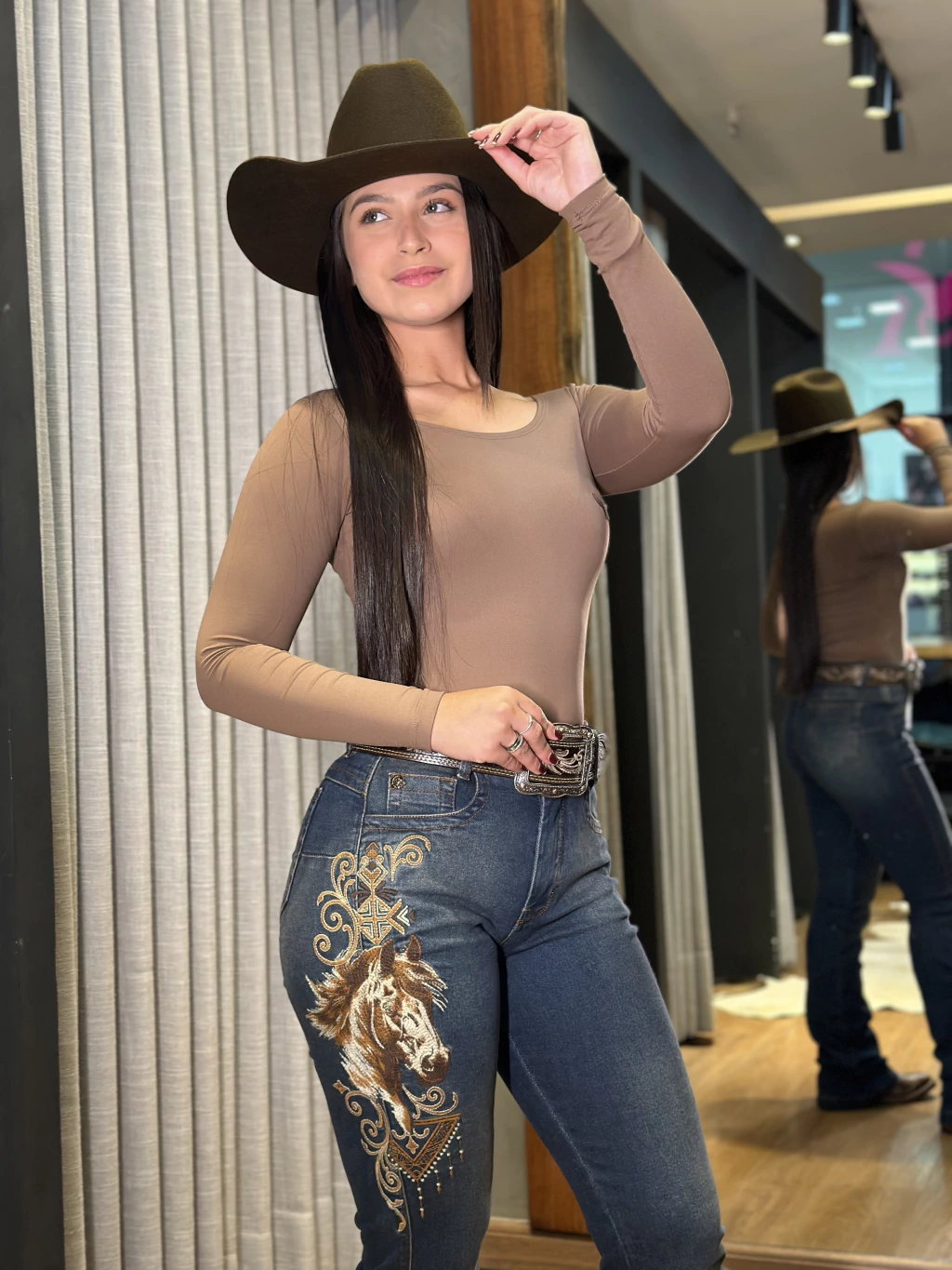 Calça Buphallos com bordados que valorizam o visual e trazem identidade ao estilo country. Confeccionada em tecido resistente e confortável, possui caimento que se ajusta ao corpo sem limitar os movimentos, ideal para o dia a dia ou ocasiões especiais.