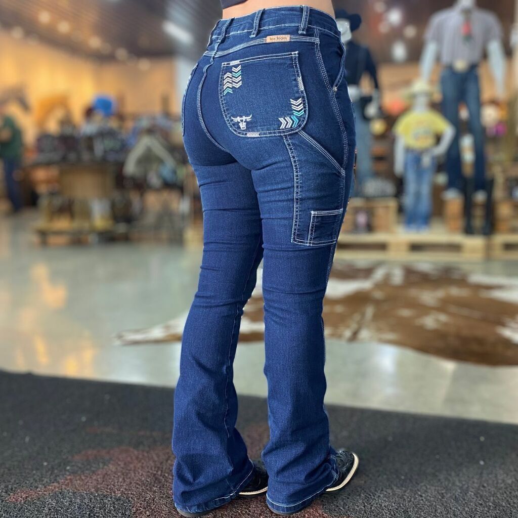 Calça Feminina Tex Team Carpinteira Bordada Amaciada Azul