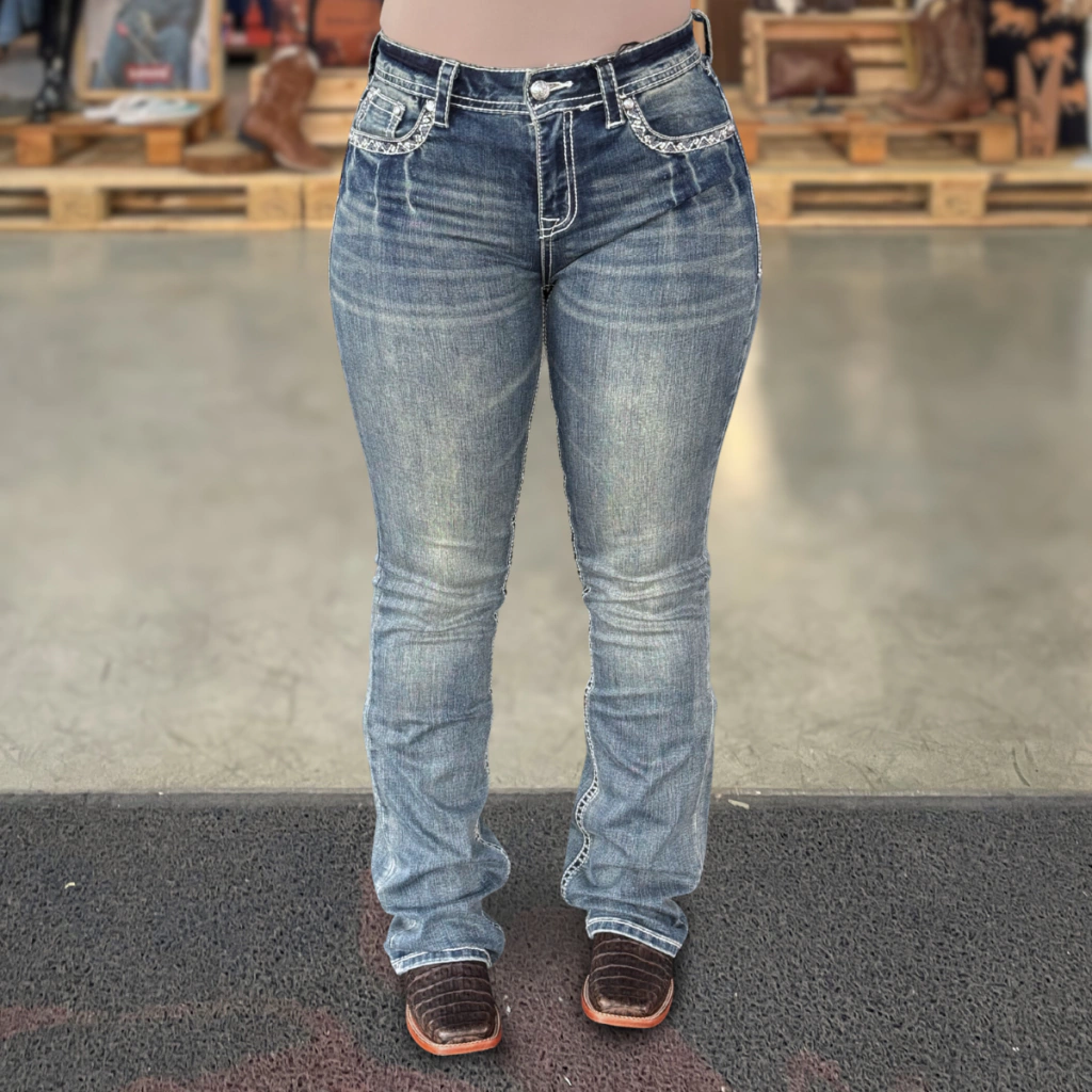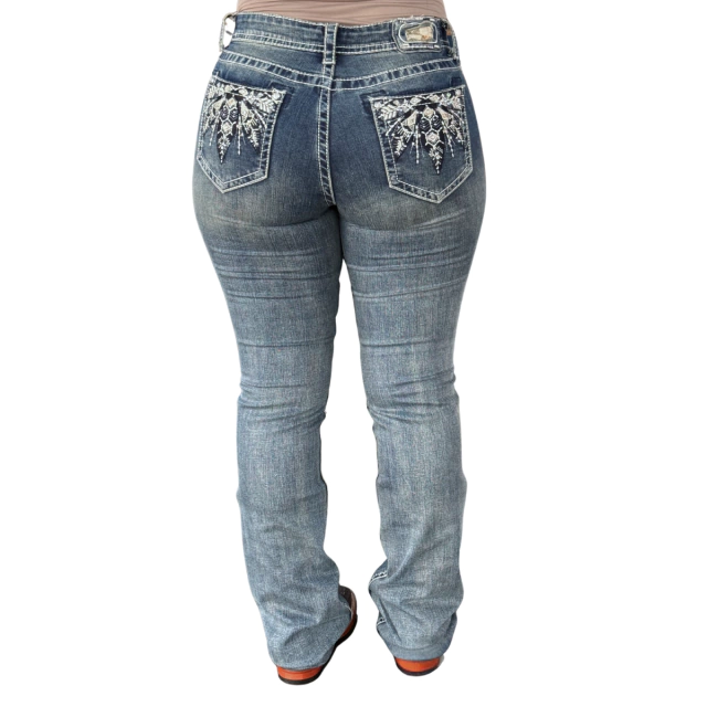 Confeccionada em jeans premium com algodão e elastano, garante flexibilidade, ajuste anatômico e conforto extremo para o dia a dia. Os delicados bordados e aplicações de strass trazem um brilho sutil e autêntico ao visual western.