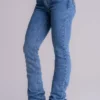 Produzida em jeans resistente e flexível, conta com bordados delicados nos bolsos traseiros, que trazem um toque charmoso e exclusivo à peça. Sua composição garante excelente caimento, toque macio e liberdade de movimento, enquanto a cintura média oferece ajuste confortável ao corpo.