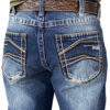O detalhe em bordado no bolso adiciona um toque de sofisticação ao modelo, enquanto a cor jeans proporciona versatilidade para diversas combinações.