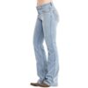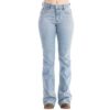 Calça Feminina Zenz Western Jeans Farmland Azul Claro Flare Com Brilho Total