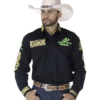 Camisa Radade Manga Longa, confeccionada em sarja 100% algodão, recortes na manga, bordados na frente, costas e nas mangas.