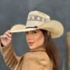 • Bandinha com Detalhes: Feita do mesmo material do chapéu, possui uma fivela passador e ponteira em prata adornada com uma pedra vermelha, adicionando um toque de distinção.