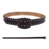 Cinto Paul Western Pelo 495 é fabricado em couro legítimo com detalhe em pelo, conferindo sofisticação ao seu visual western. Possui largura de aproximadamente 4,5cm, recortes a laser, tranças em nylon e fivela removível de metal trabalhada. Um acessório resistente, elegante e versátil para completar seu look country com estilo autêntico.