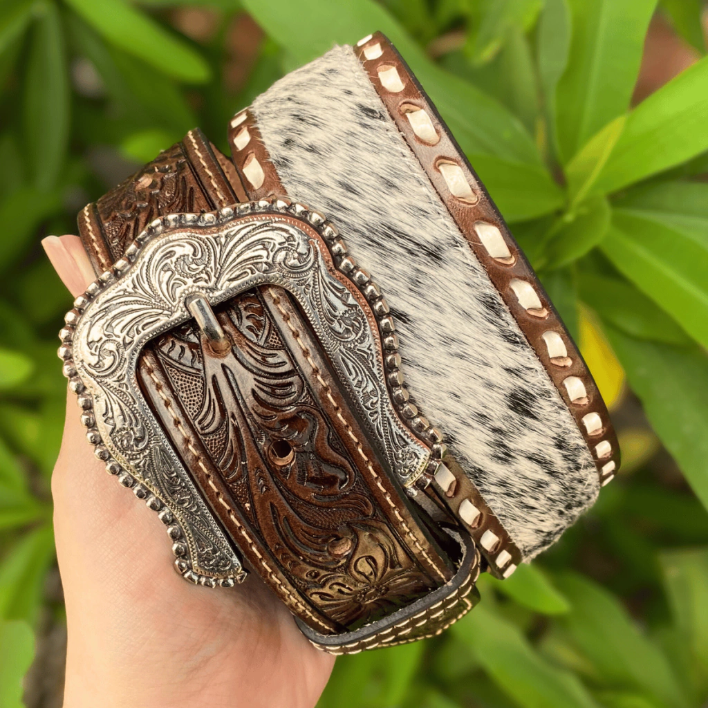 O Cinto Paul Western Pelo 492 é fabricado em couro legítimo com detalhe em pelo, conferindo sofisticação ao seu visual western. Possui largura de aproximadamente 4,5cm, recortes a laser, tranças em nylon e fivela removível de metal trabalhada. Um acessório resistente, elegante e versátil para completar seu look country com estilo autêntico.