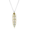 A pena pende de uma corrente ajustável de 71 cm, proporcionando leveza e movimento ao visual.