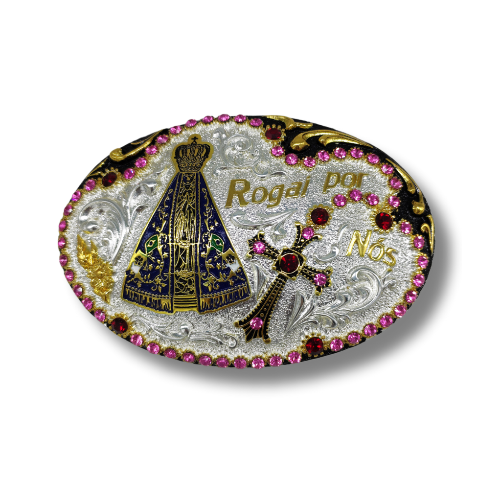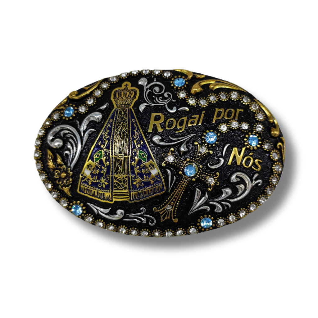 Fivela Sumetal Nossa Senhora 7273Esta fivela incrível é feita em metal de alta qualidade, na cor prata e preto, trazendo a imagem de Nossa Senhora Aparecida em destaque. Os strass nas cores rosa com rubi e azul claro adicionam um charme especial, enquanto o detalhe preto garante um visual elegante e moderno. Perfeita para dar um toque de fé e estilo ao seu cinto!Tamanho: 12 cm de largura x 8,5 cm de alturaQualquer dúvida ou atendimento personalizado, clique no ícone do ” ou perguntas” e fale com uma de nossas atendentes!