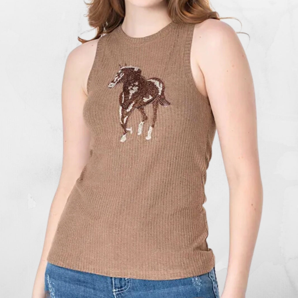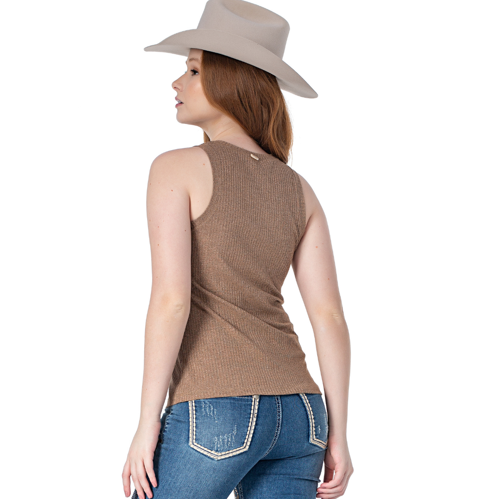 Regata Feminina em Malha Canelada Mista de Viscose – Cor Mescla Marrom