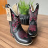 Texana Ágata Infantil – Couro Látego Preto/Bordado Ramos Rosa
