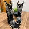 Texana Alice – Couro Nobuck Preto/Bordado Tribal Bege com Tricê