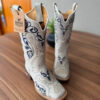 Texana Alice – Couro Off-White/Bordado Tribal Azul Marinho com Padroeira/Metais