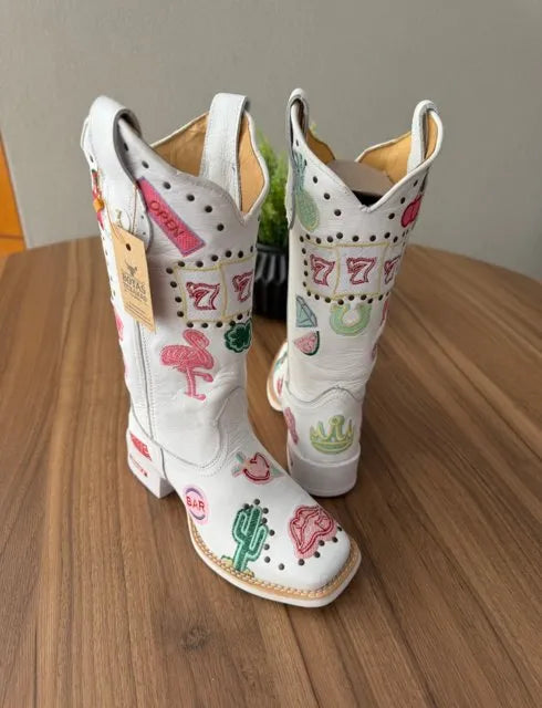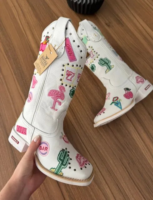 Nos das Botas Texanas Country além de botas texanas e botinas vendemos sonhos e histórias. Cada bota é única. Cada bota é uma história escrita diretamente pelo cliente e nós a reproduziremos da melhor maneira possível. Nossas botas são produzidas em couro bovino 100% legítimo de maneira totalmente personalizável, de modo que você pode escolher entre outras coisas: A cor do couro, a cor dos bordados, a cor, tipo e material dos solados, além de ser oportunizado ao cliente a personalização de nome ou sobrenome, além da inclusão de algum acessório que deixará a bota uma peça exclusiva.
