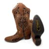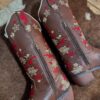 Texana Florada Bico Fino – Couro Látego Marrom | Bordado Bege Marrom e Vermelho