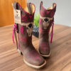 Texana Helena – Couro Horse Cappuccino/Bordado Touro 3D Rosa