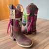 Texana Helena Infantil – Couro Horse Nescau/Bordado Touro 3D Laranja com Trice
