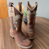 Texana Iracema – Couro Horse Nescau/Bordado Cocar Bege e Verde