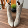 Texana Isabela Bico Fino – Couro Off-White/Bordado Cruz Marrom e Bege
