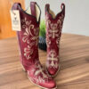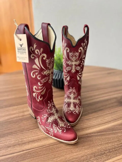 Texana Isabela Bico Fino – Couro Vermelho/Cruz marrom e Bege