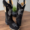 Texana Julia – Couro Nobuck Preto/Bordado Cavalo Branco