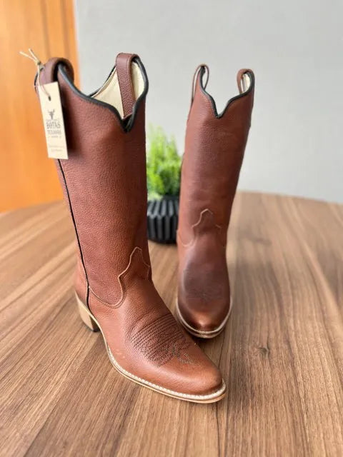 Nos das Botas Texanas Country além de botas texanas e botinas vendemos sonhos e histórias. Cada bota é única. Cada bota é uma história escrita diretamente pelo cliente e nós a reproduziremos da melhor maneira possível. Nossas botas são produzidas em couro bovino 100% legítimo de maneira totalmente personalizável, de modo que você pode escolher entre outras coisas: A cor do couro, a cor dos bordados, a cor, tipo e material dos solados, além de ser oportunizado ao cliente a personalização de nome ou sobrenome, além da inclusão de algum acessório que deixará a bota uma peça exclusiva.