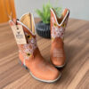Texana Melinda Infantil – Couro Horse Telha/Bordado Girassol